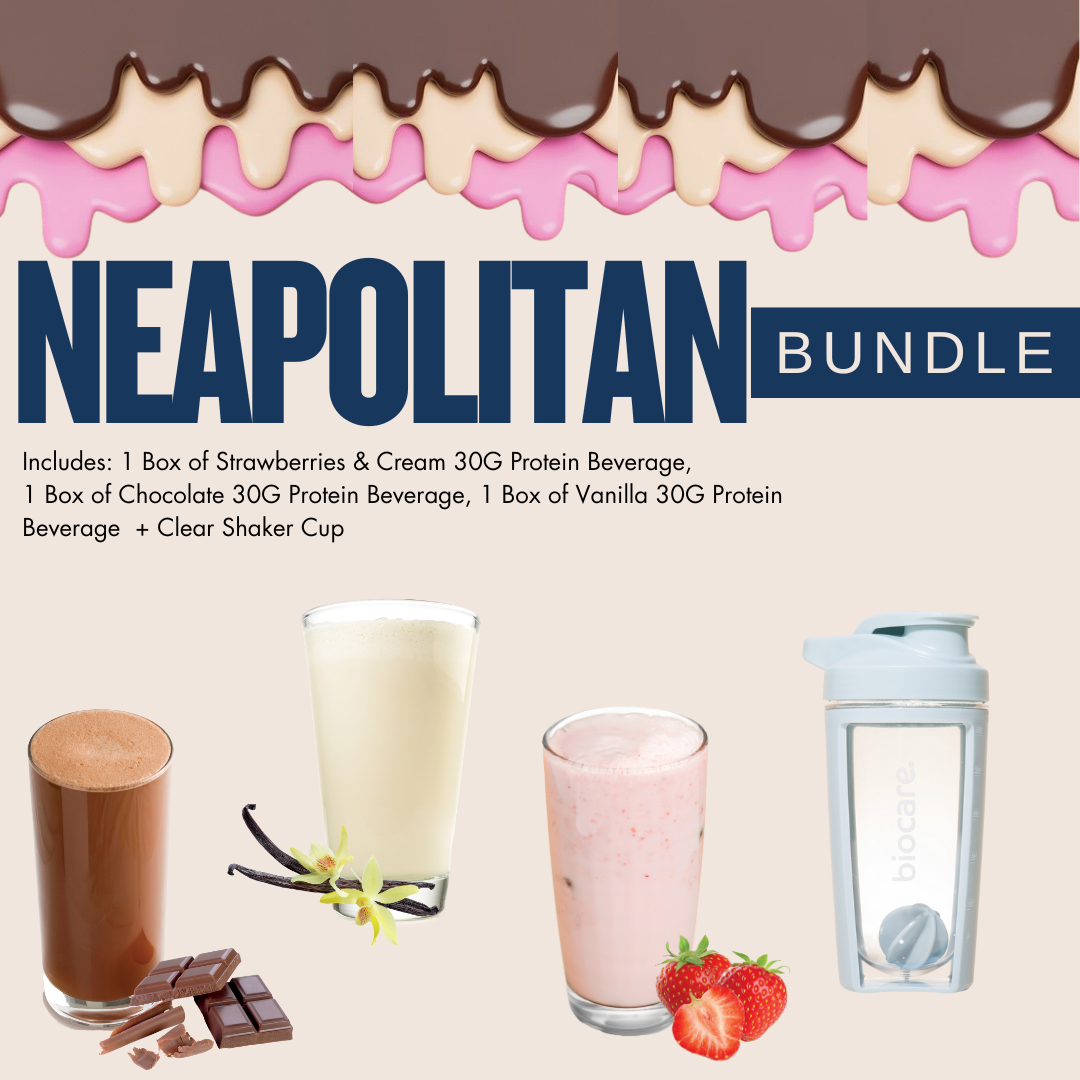 The Biocare dietary beverage comes in a powder form that emulsifies in water. Each individual serving of Biocare is contained in a sachet packet — so there’s no measuring needed. Simply rip open the packet, empty the powdered contents into a shaker bottle (or six ounces of cold water), shake/stir to mix, and enjoy! You can add ice if you’d like; or, check out ourBiocare Recipes page for ways to get creative with your beverage! Biocare is available in four delicious flavors, including Vanilla, Chocolate, Strawberries & Cream and Chocolate Salted Caramel.
