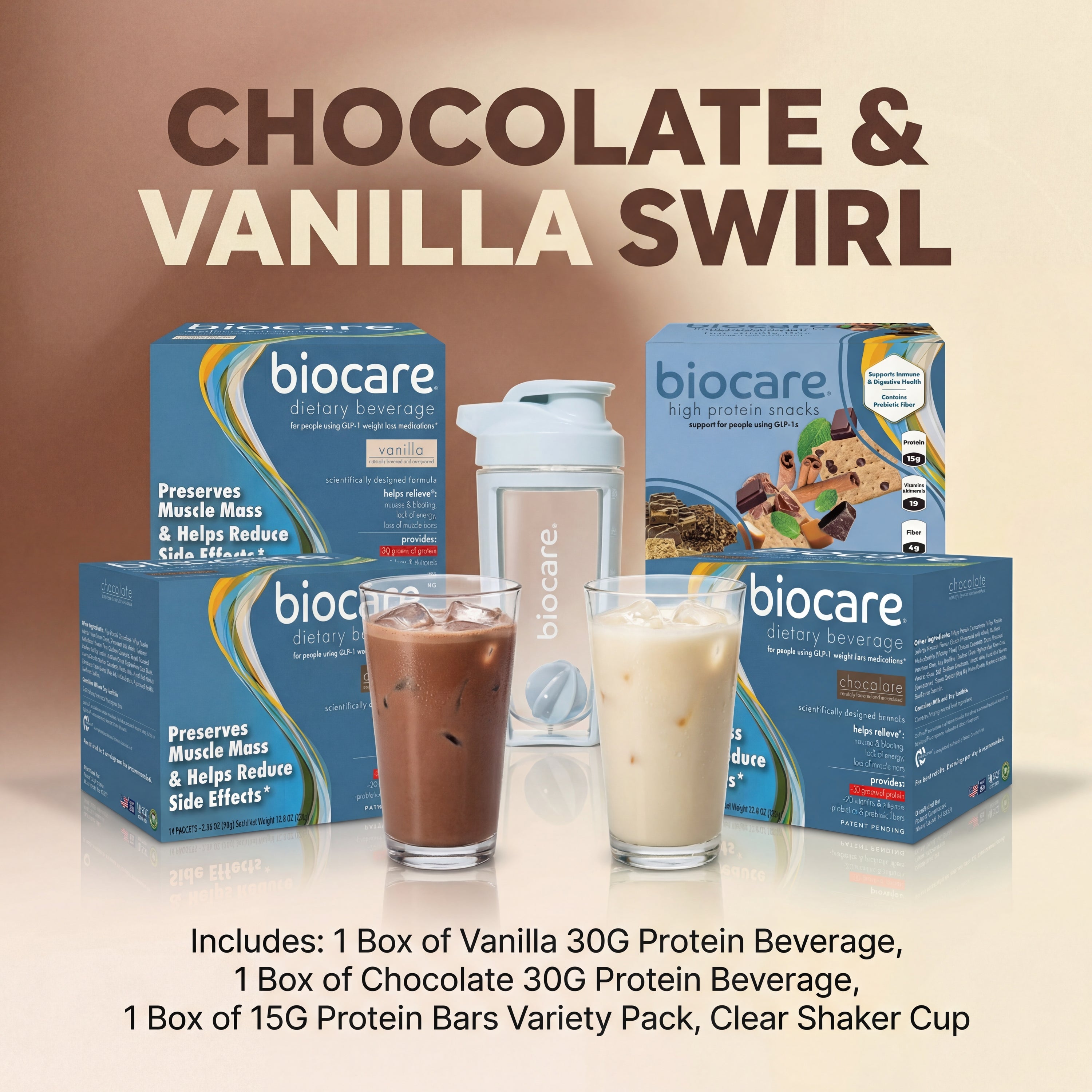 Biocare is a delicious, science-backed nutrition beverage specifically designed for those using GLP-1 weight loss medications like Wegovy, Zepbound, and Ozempic. Our innovative, patent-pending formula delivers essential protein and nutrients while helping to reduce common GLP-1 side effects, such as nausea and bloating — so you can feel great and stay focused on your goals.*