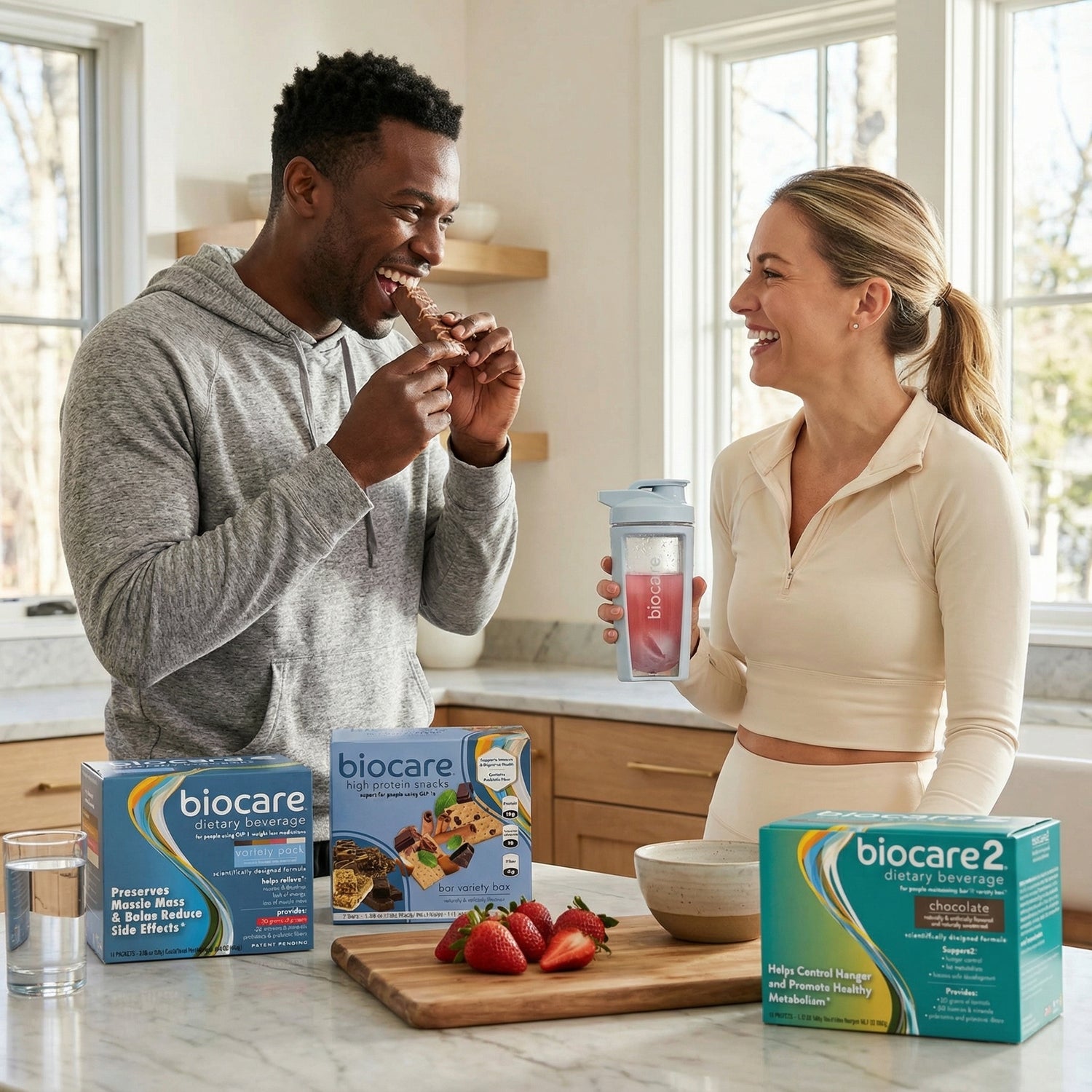 - Free Welcome Package: Includes variety box of Biocare & Biocare2 shakes, select box of protein bars, Biocare shaker bottle & Biocare frother